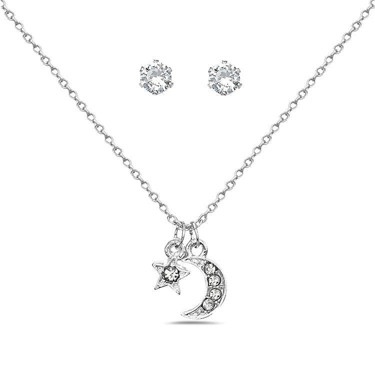 Sterling Silver "Interstellar" Pendant & Round CZ Stud Earring Set