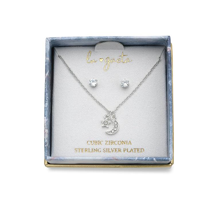 LU GAETA Gift Boxed Jewelry Sterling Silver "Interstellar" Pendant & CZ Earring Set