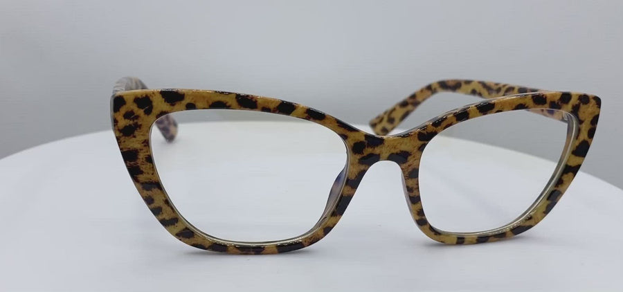 TWELVE - Billie - Blue Light Blocking Glasses - UV & Bluelight Filtering - Anti-Glare - For Computer and Gaming - Reduce Digital Eye Strain - Non-Prescription - Trendy Cat-Eye Frame - Leopard